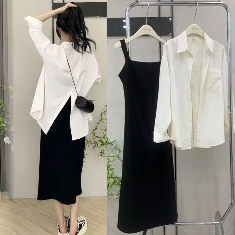 Thirteen Line 2024 Summer Lazy Style plus size Split Shirt Women's Shirt Coat Long Slip Skirt Two suit