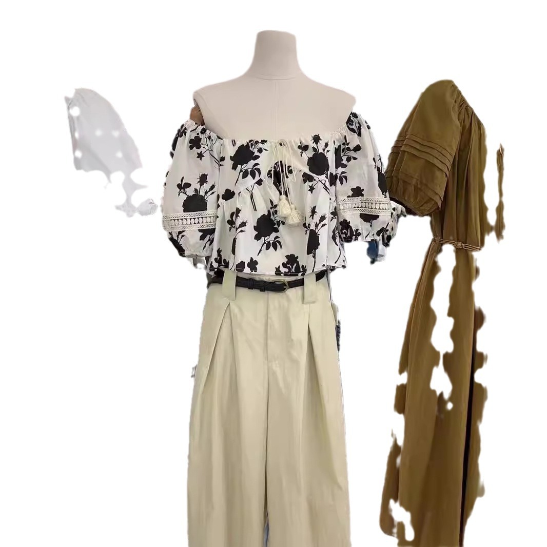 | nameOriginal | Thirteen Line 2024 Summer New Western Style French Unique Chic Printed Loose Pullover Short Sleeve Top |
