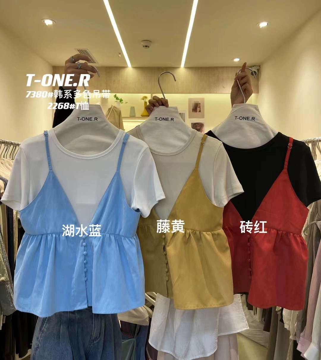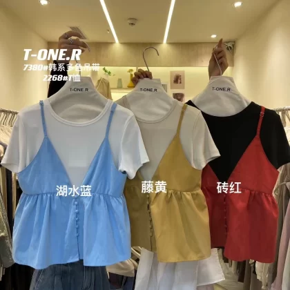 | nameOriginal | Thirteen-line V-neck loose short suspenders layered on top |
