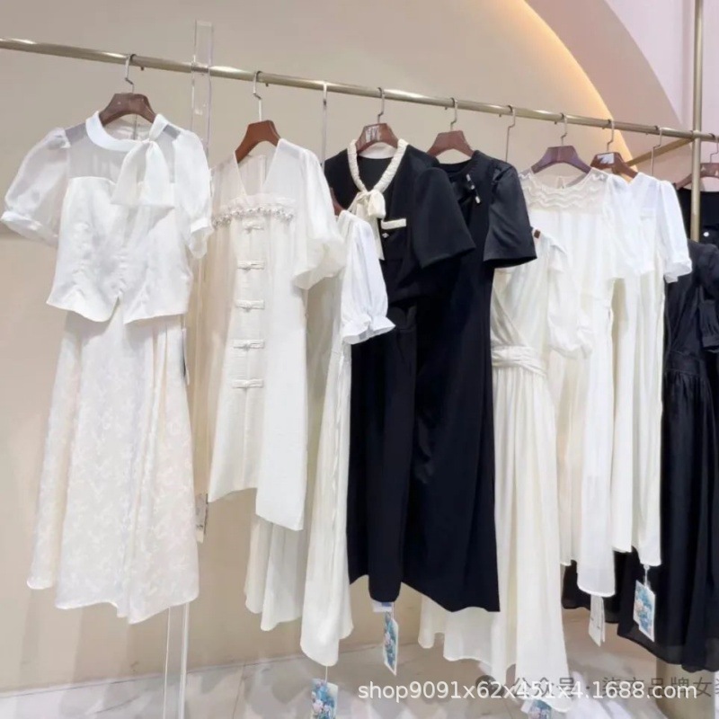 ثلاثة عشر خطوط جديدة النمط الصيني فستان حريري المرأة 2024 الصيف منتصف طول مطبوعة تعديل شيونغسام التوت الحرير تنورة