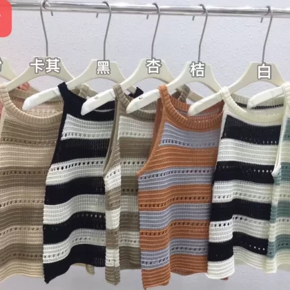 | nameOriginal | Thirteen lines of striped off-shoulder knitted loose outer wear halterneck |