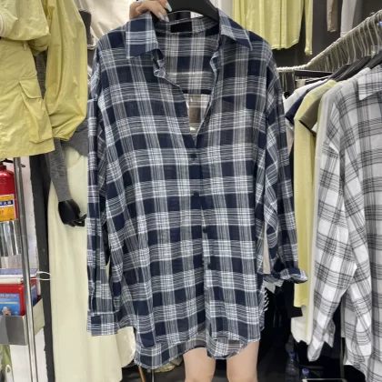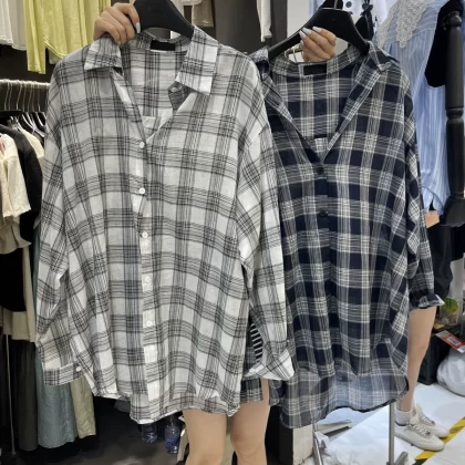 | nameOriginal | Thirteen lines of thin sunscreen plaid loose long-sleeved summer dress |