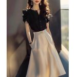 This year's popular beautiful dress women's 2024 new summer light luxury high-end temperament black shirt two-piece set