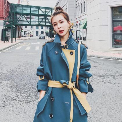 | nameOriginal | This year's popular blue color matching trench coat Women's Mid-length small 2022 autumn new high-grade overcoat |