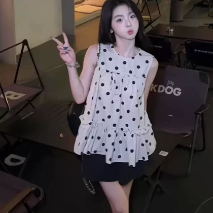 | nameOriginal | This year's popular French retro round neck polka dot shirt for small people is loose Korean style small fresh baby doll shirt versatile for women |