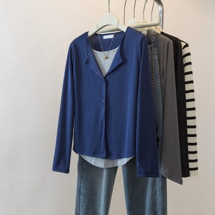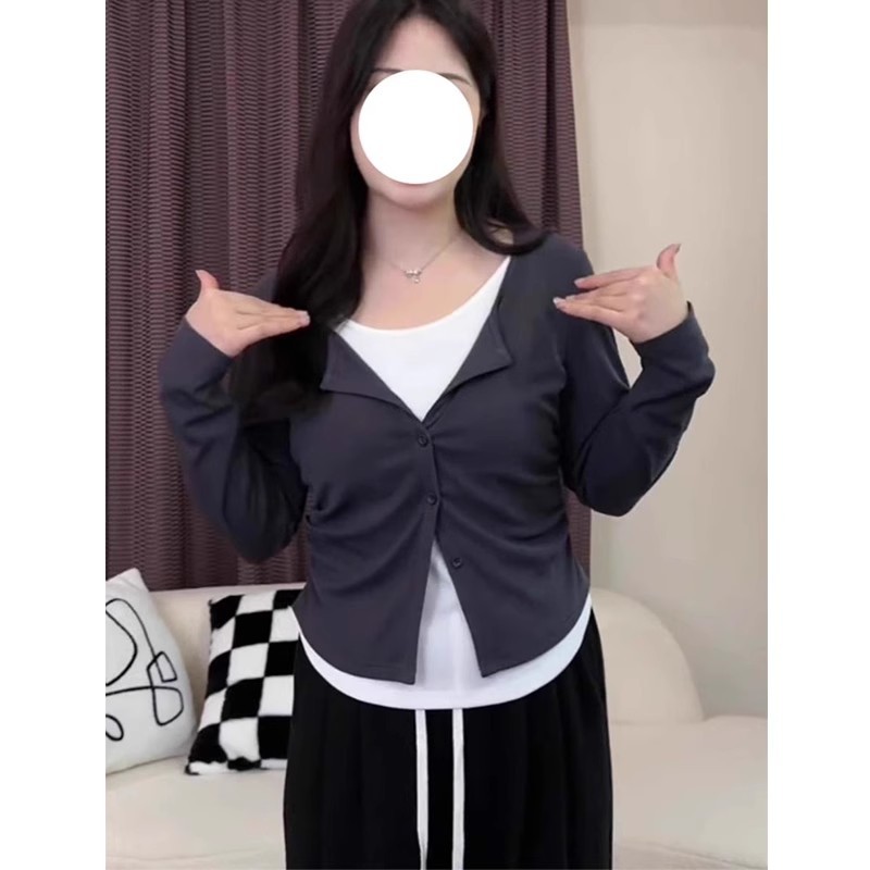 | nameOriginal | This year's popular plus size 2024 cardigan long sleeve T-shirt women's spring chubby girl giant slim fake two-piece high-end top |