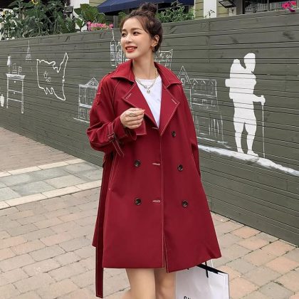 | nameOriginal | This year's popular trench coat women's small 2023 new spring and autumn British style temperament mid-length red coat |