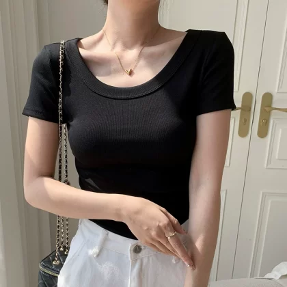 | nameOriginal | Threaded short-sleeved summer U-neck versatile thin top T-shirt |