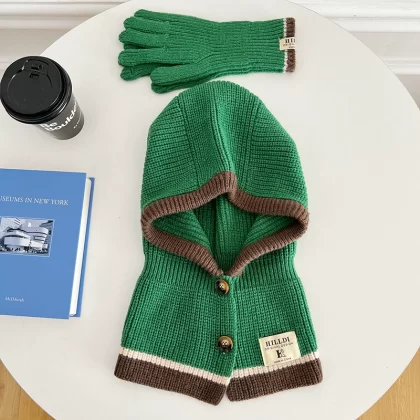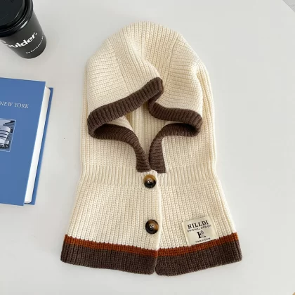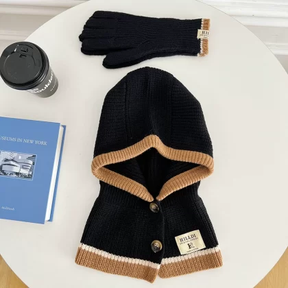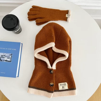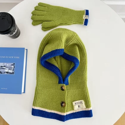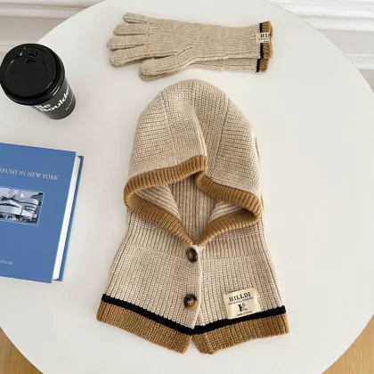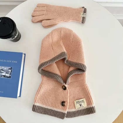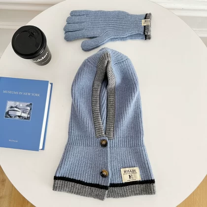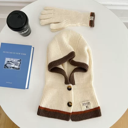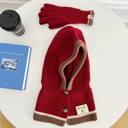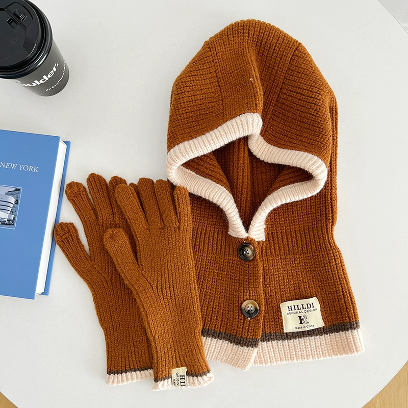 | nameOriginal | Three-color balaclava two-piece set Korean style winter versatile button gloves scarf knitted hat for women |