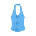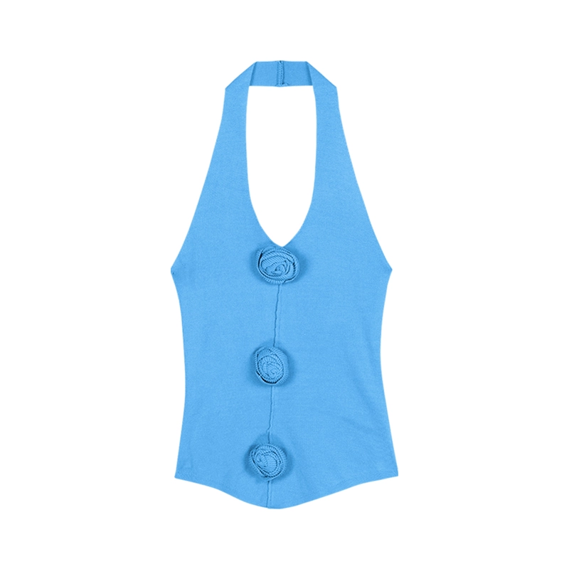 ثلاثي الأبعاد بدون ظهر، رقبة رسن محبوكة بزهرة زرقاء رفيعة
