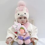 Three-dimensional cartoon children's hat scarf two-piece autumn and winter children's warm wool hat scarf set 1-3 years old