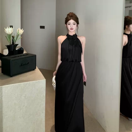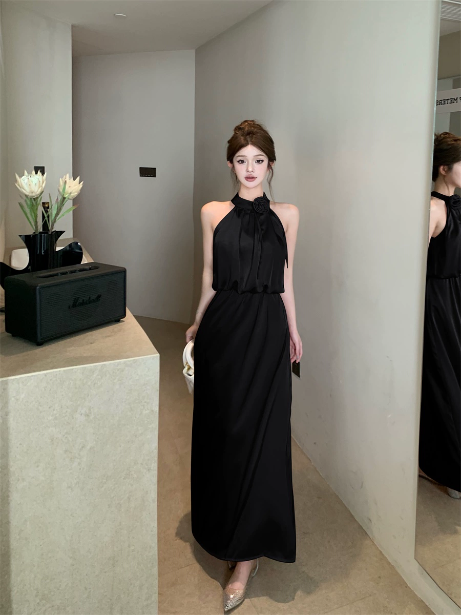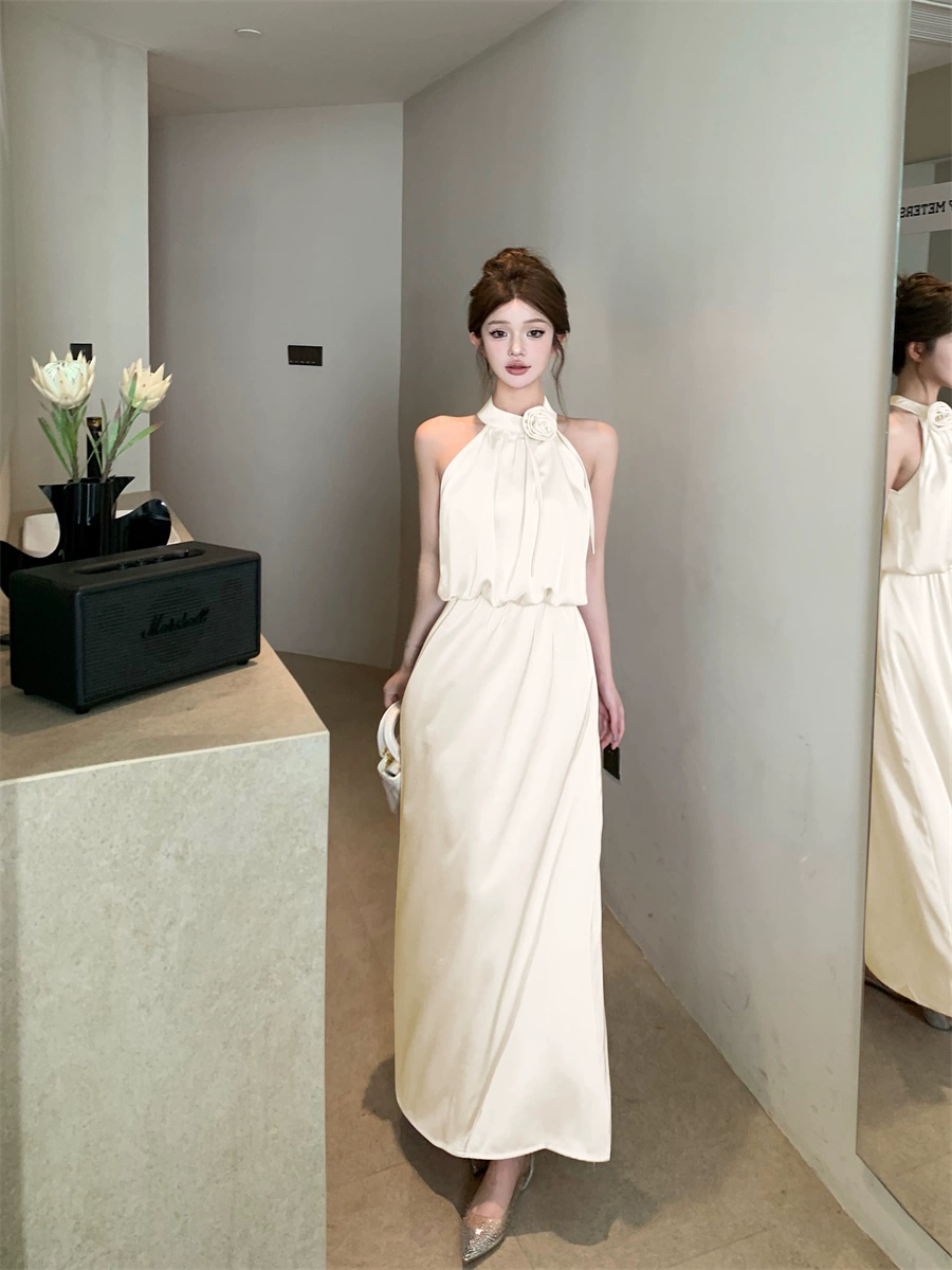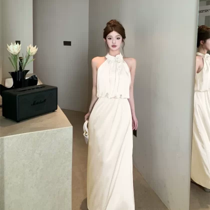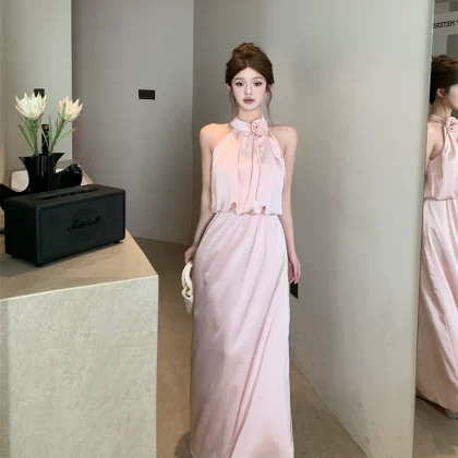 | nameOriginal | Three-dimensional satin halter neck strap A-line two-piece set with flowers |