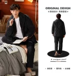 بيجامة رجالية مبطنة بالقطن مرجاني ثلاث طبقات ربيع وخريف وشتاء شباب 2023 موديلات جديدة سميكة للغاية ومخملية دافئة