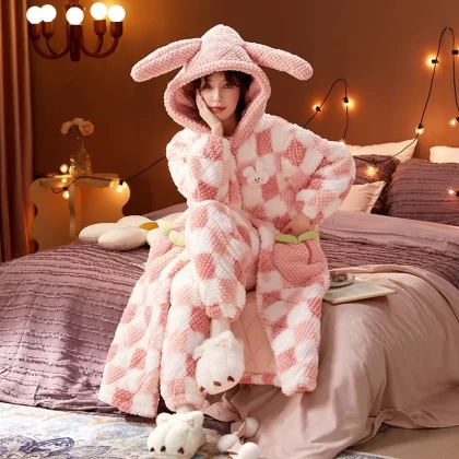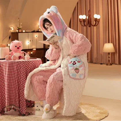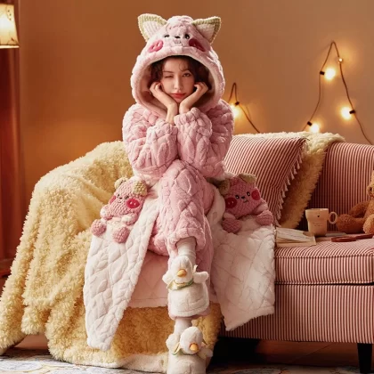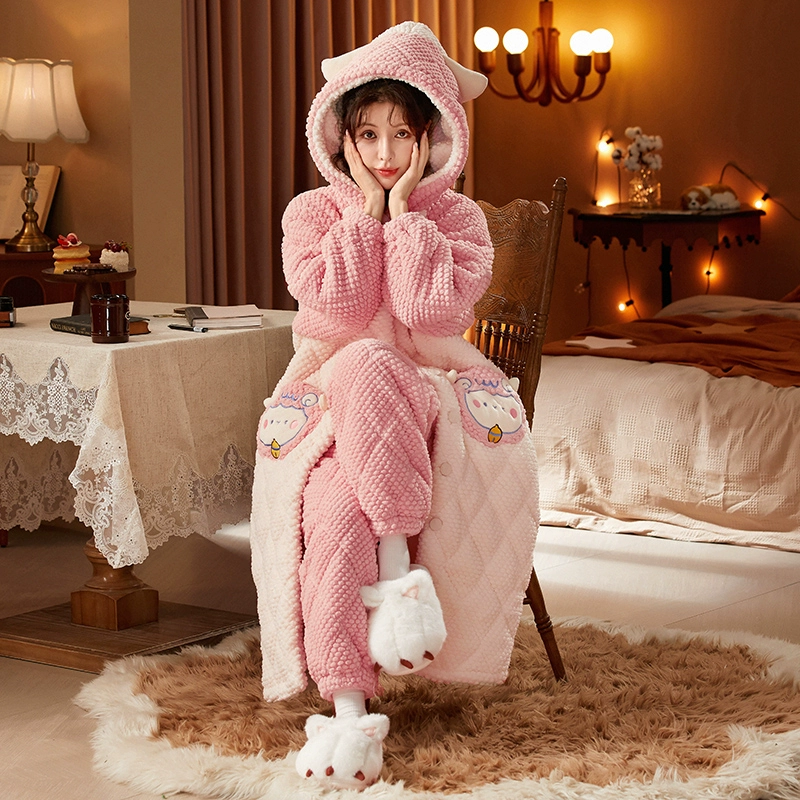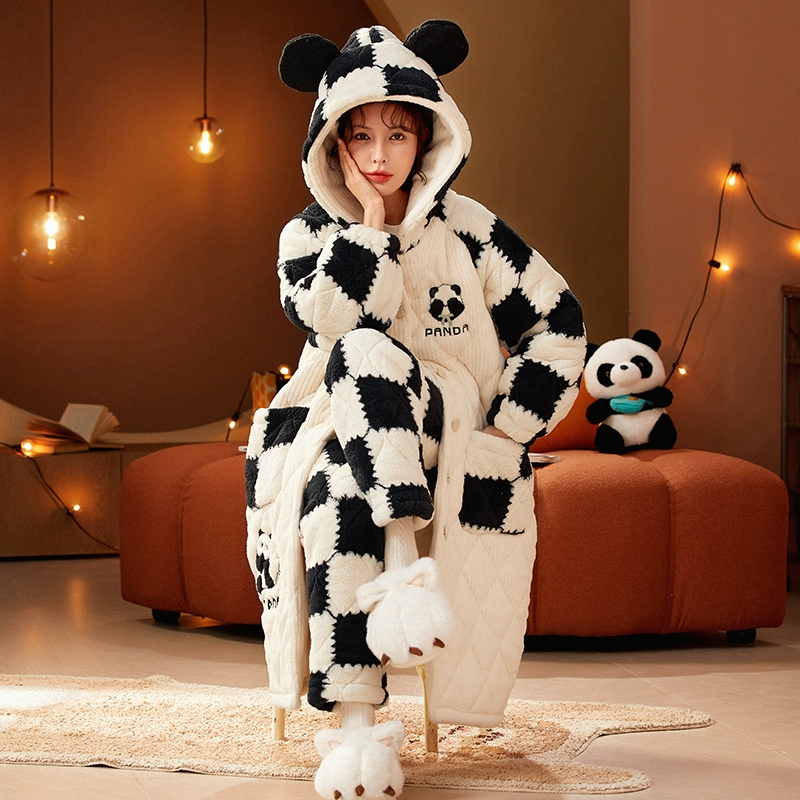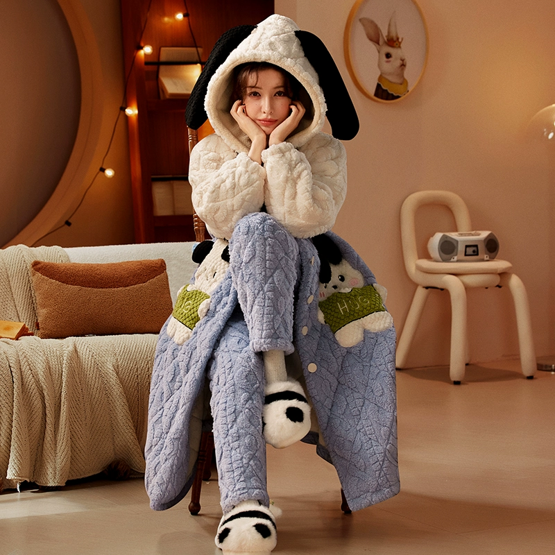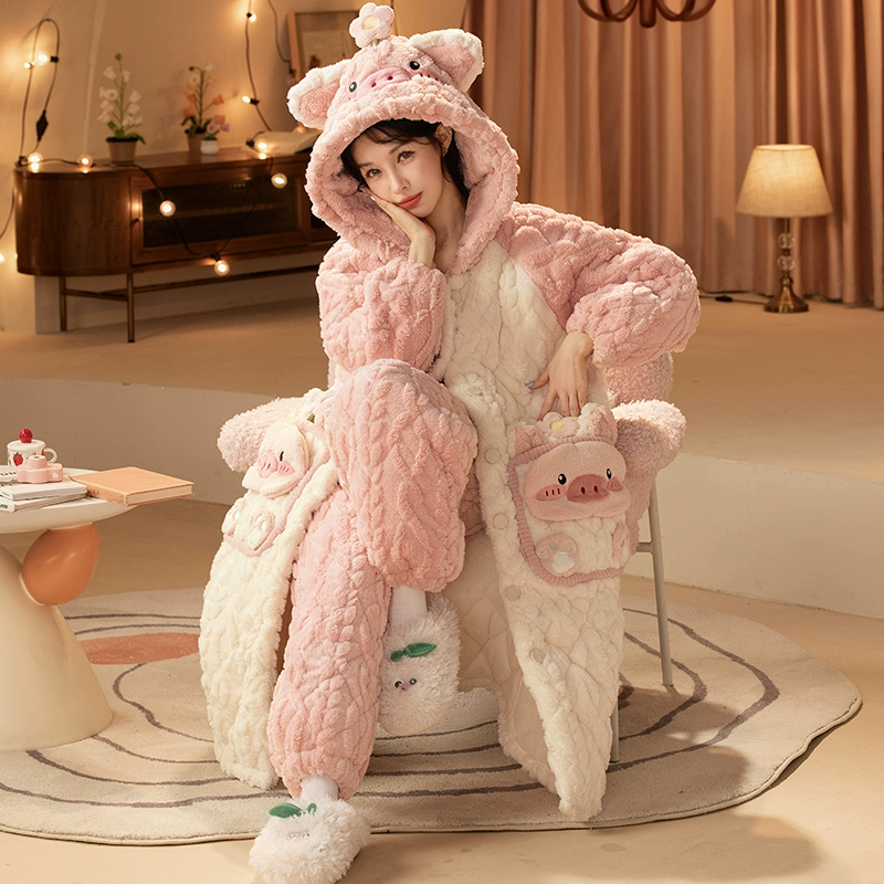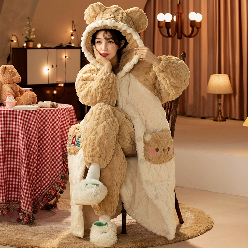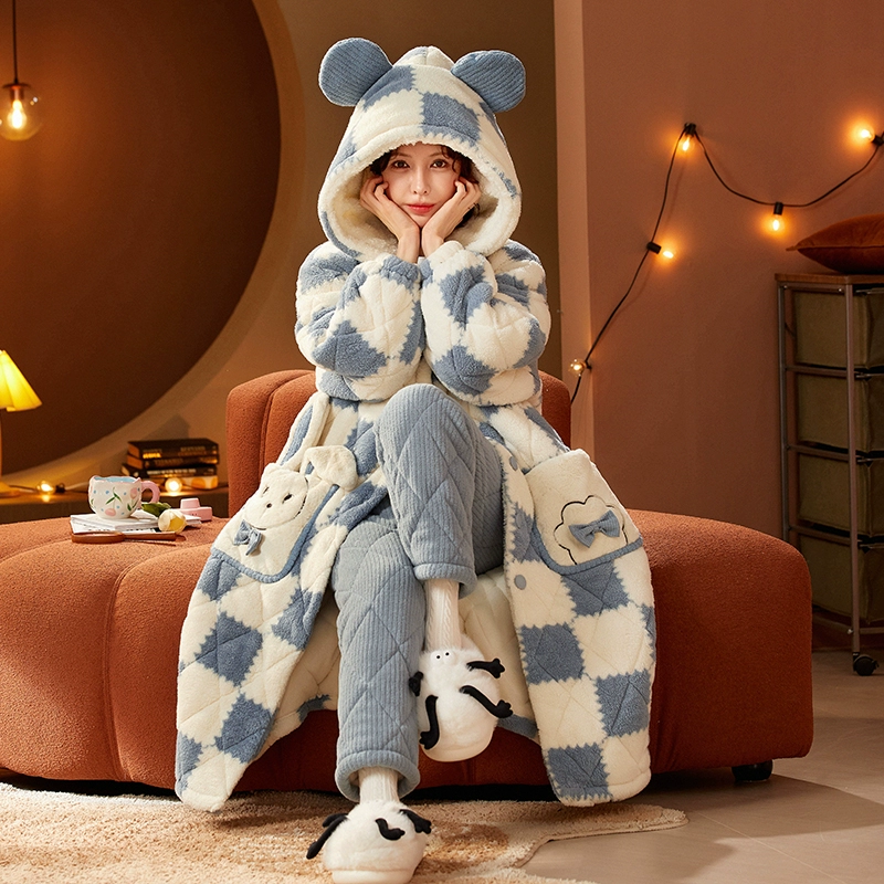| nameOriginal | Three-layer women's fleece hooded outer nightgown and quilted jacket |