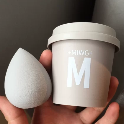 ثلاثة أكواب من أكواب القهوة ، بيض المكياج Q لا تأكل مسحوق مسحوق ناعم ، إسفنجة إسفنجية بيض لي جياكي