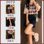 | nameOriginal | Three-piece Suit/One-piece Summer New College Style Solid Color Top Sweet Cool Rhombic Knitted Vest Denim Skirt |