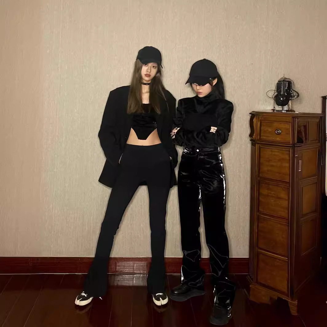 Thth * r Correct Edition High Waist Slim Fit Bag Hip Slim Black Horseshoe Pants Women's Micro Horn Tight Long Pants