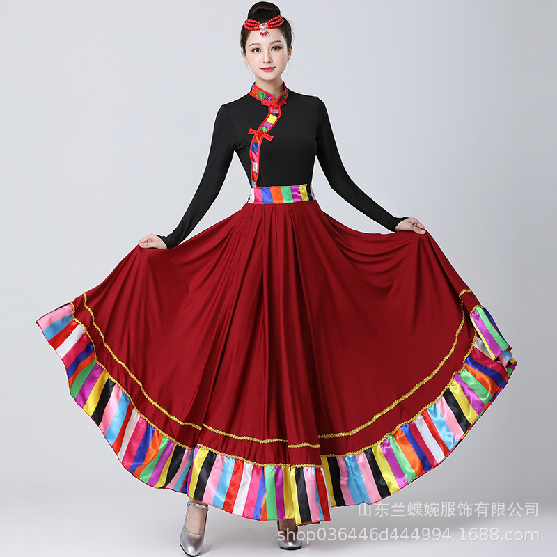 | nameOriginal | Tibetan Dance Performance Costume Female Middle-aged and Elderly Square Dance Suit Ethnic Stage Large Swing Skirt Practice Half-length Skirt |