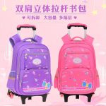 Tie-rod schoolbag girls primary school students cute six-wheel stair climbing grade 1-3-6 girls hand push factory wholesale