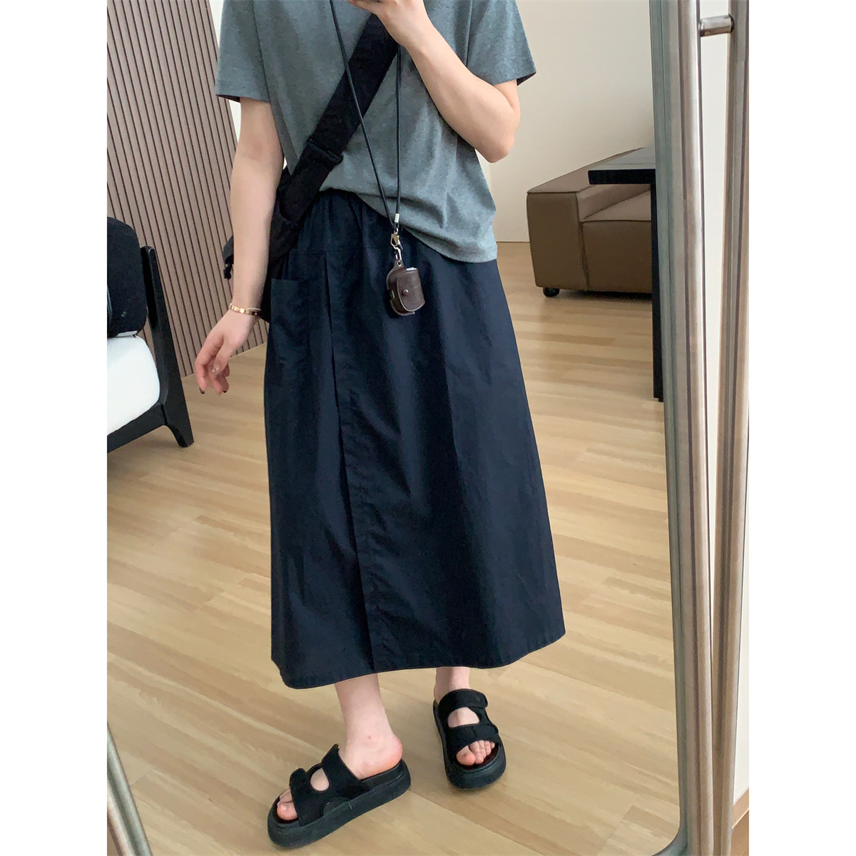 TikTok Explosive navy blue Skirt Women's Summer Loose High Waist Slimming Loose All-match Casual Wide Leg Mid-length Skirt