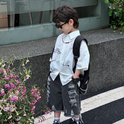 | nameOriginal | Tiru 2024 Summer New Korean Style Boys' Fashion Casual All-match Letter Design Sense Shirt Children's Top Trendy |