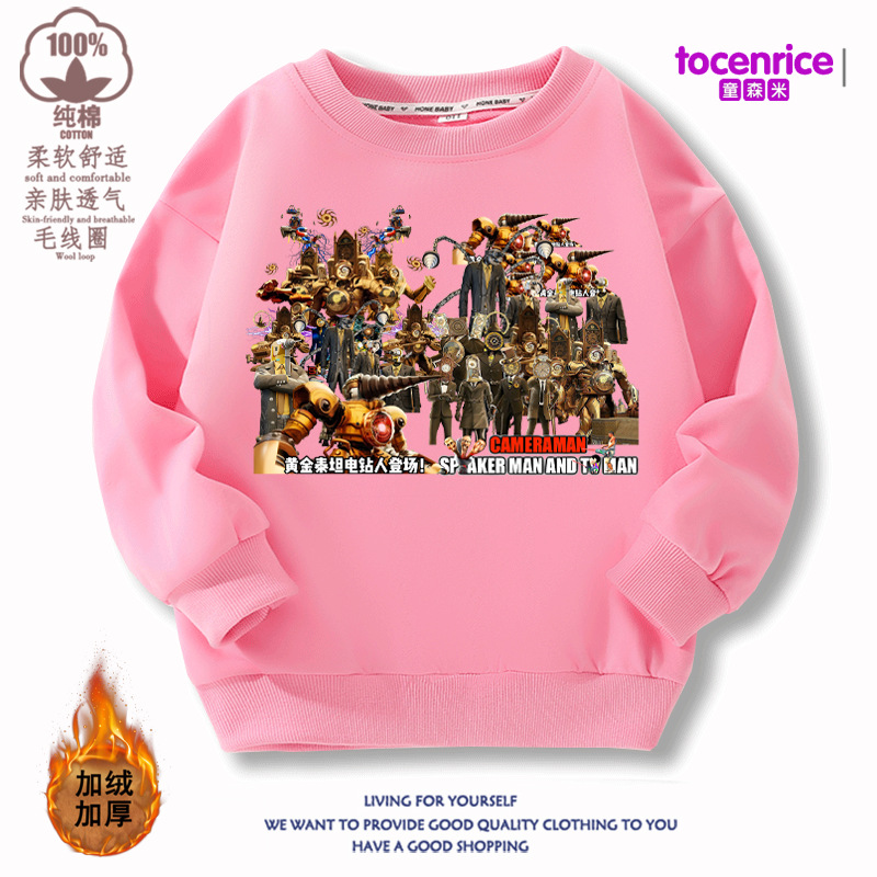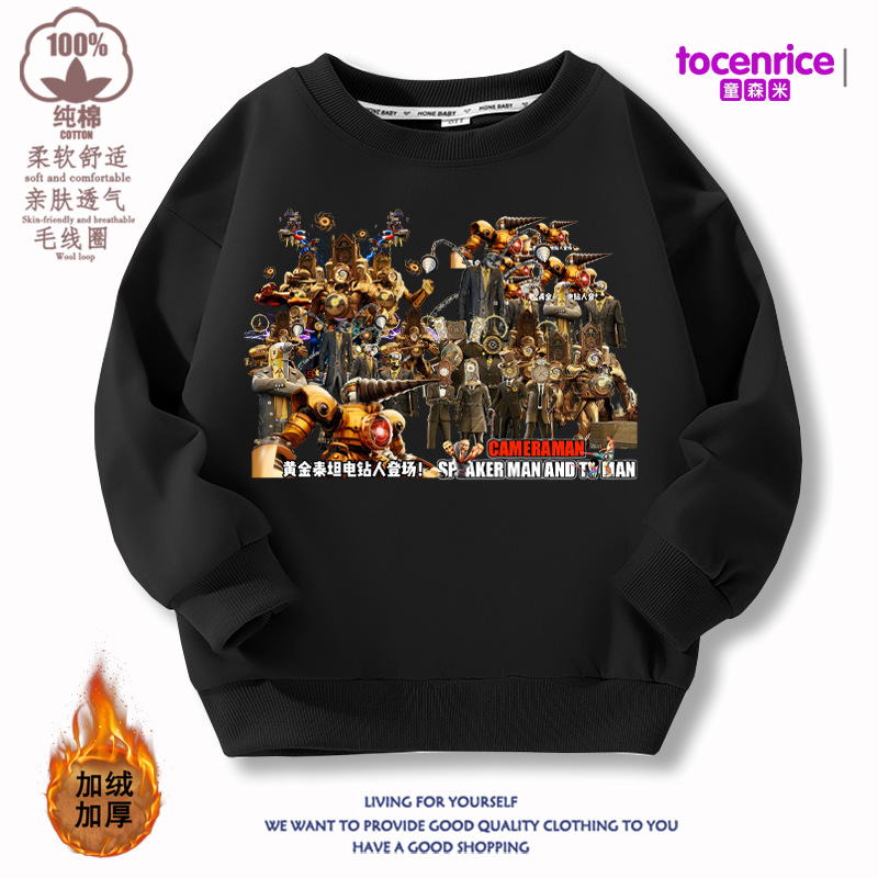 Titan electric drill ultimate monitor Clock Man clothes children's long-sleeved sweater fleece-lined boy's shirt trendy children's clothing
