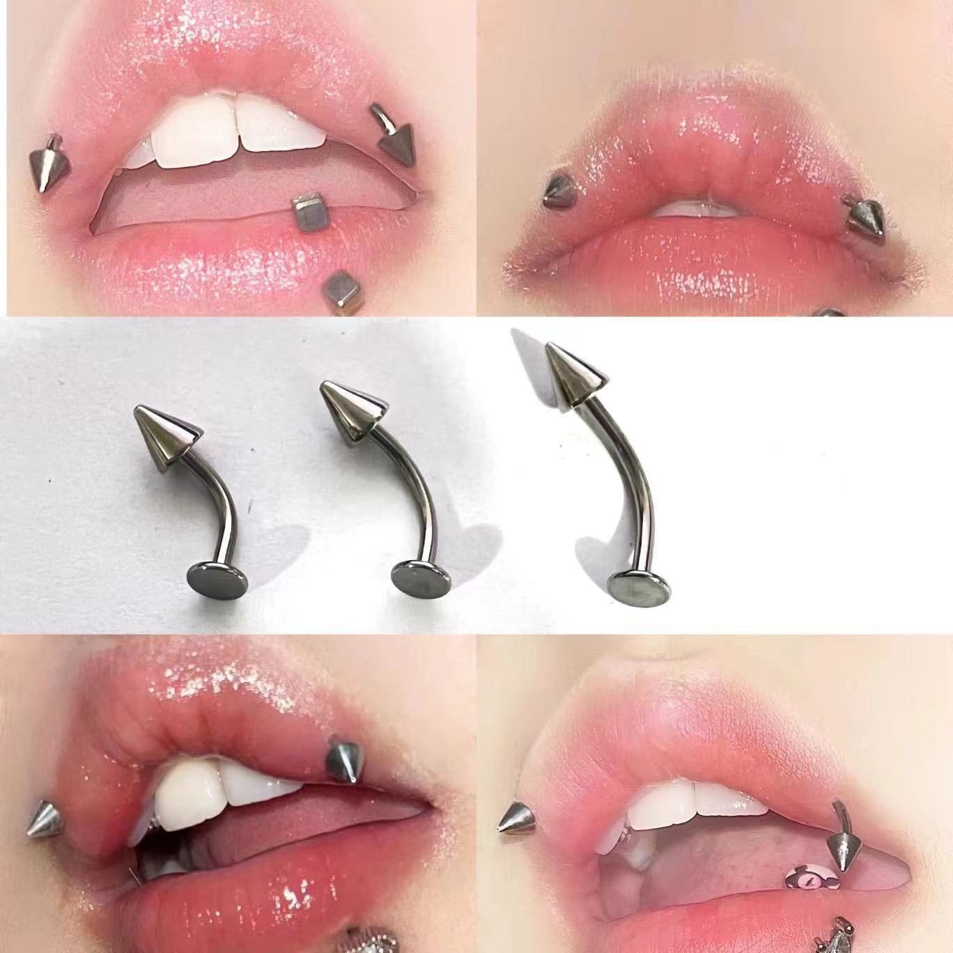 | nameOriginal | Titanium steel non-allergic tiger tooth perforation curved bar T-shaped flat bottom 4mm tiger tooth lip nail earnail external tooth pointed cone puncture jewelry |