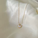 | nameOriginal | Titanium steel non-fading retro literary and artistic love element golden mother-of-pearl face niche high-end peach heart brand necklace for women |