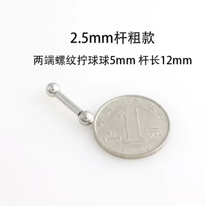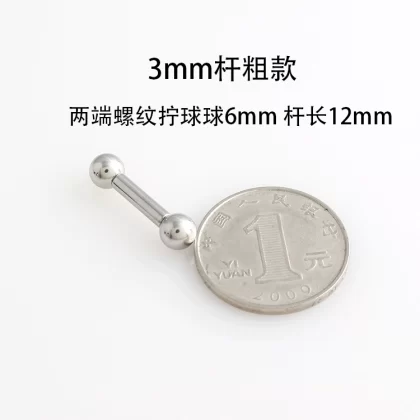 | nameOriginal | Titanium steel straight rod 12mm long men's cross-breast nail pa nail non-fading double-headed threaded large ball tongue nail piercing nail |