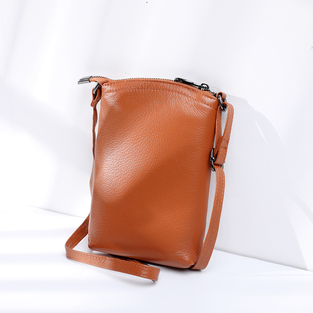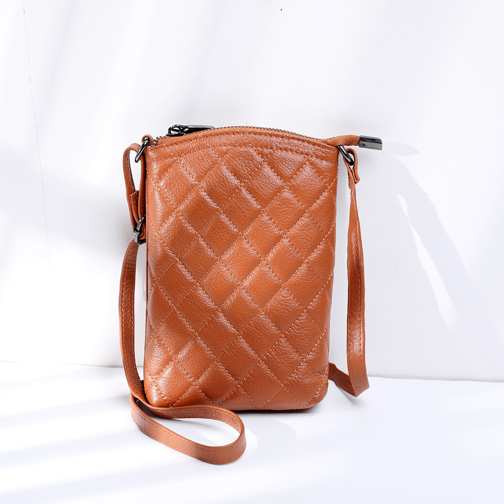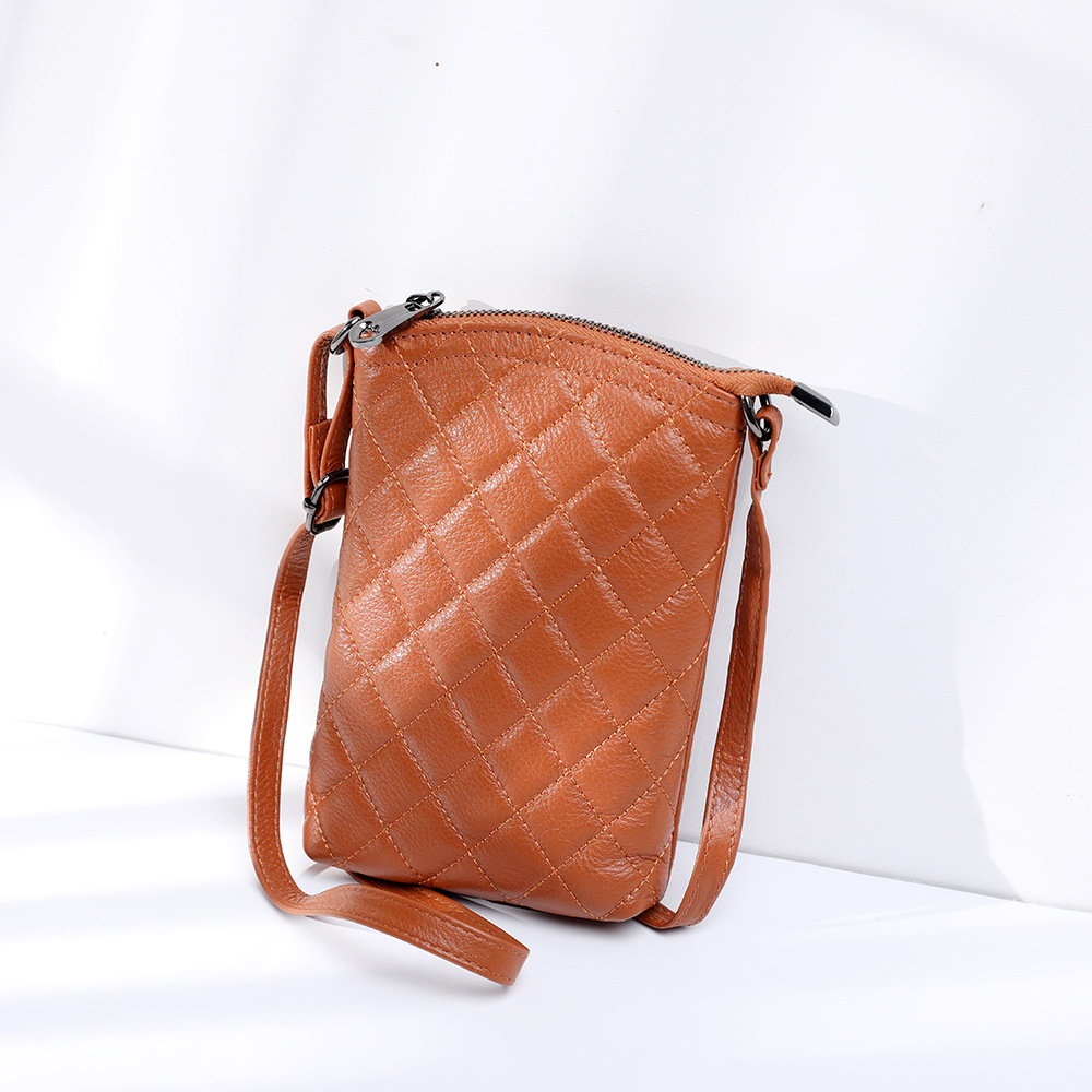 Top Layer Cowhide Mobile Phone Bag Women's Crossbody Leather All-match Rhomboid Multi-layer Small Satchel Mini Small Bag for Spring and Summer