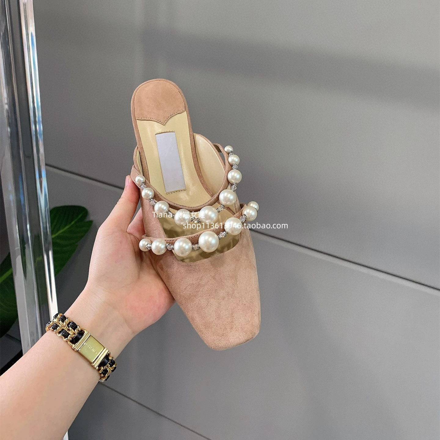 | nameOriginal | Top version ~ buy, buy, buy! Pearl half-mules genuine leather shallow mouth square toe flat shoes with rhinestones for women |