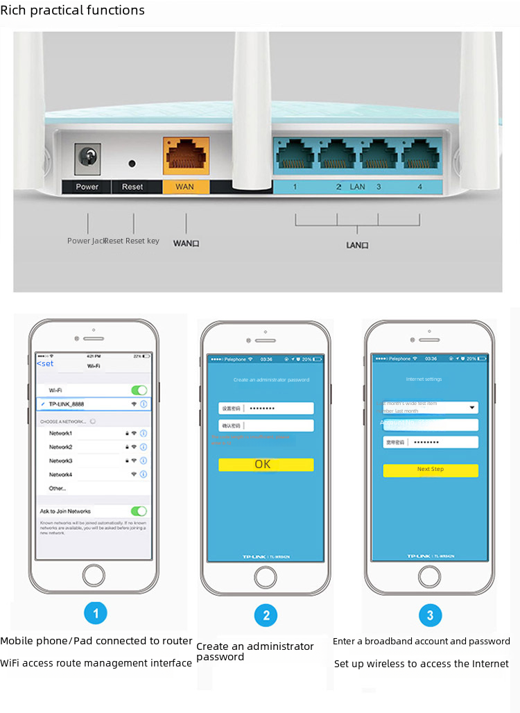 جهاز التوجيه اللاسلكي TP-LINK Home جميع ألياف النطاق العريض من netcom من خلال Wall King عالي السرعة 450MWIFITL-WR88