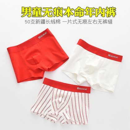 | nameOriginal | Traceless Boys' Benmingnian Underwear Cotton Class A Dragon Year 12-year-old Middle School Students Boxers Children's Red Short Underwear |