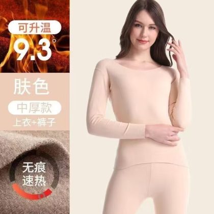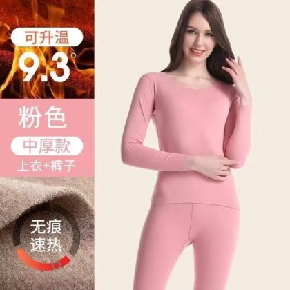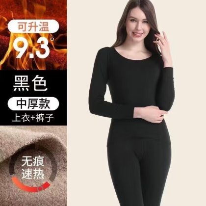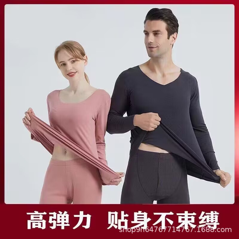 Traceless men's and women's fleece-lined thickened warm men's and women's bottoming shirt autumn clothes autumn pants set wholesale