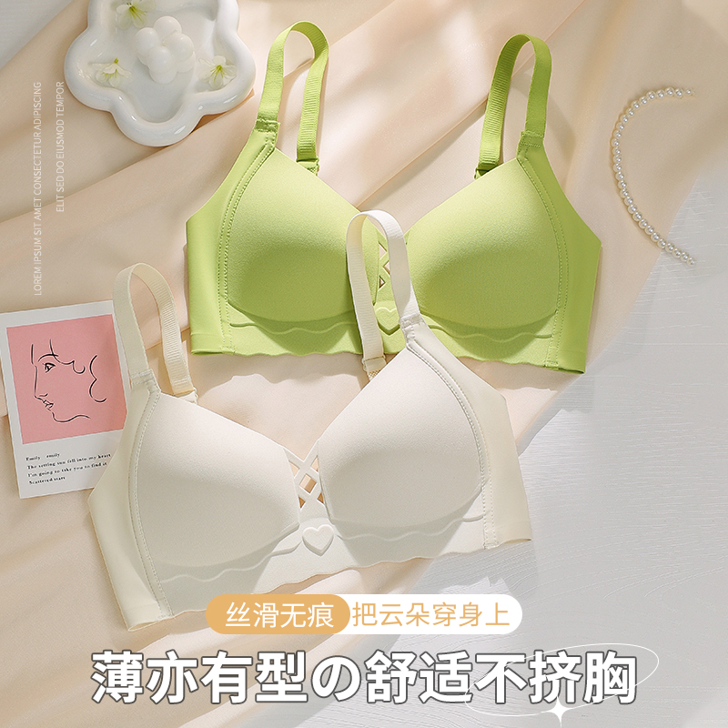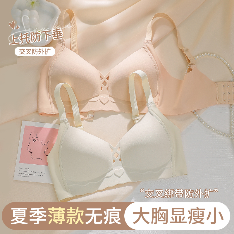 Traceless Underwear Women's Thin Summer Large Chest Showy Small Chest Breast Anti-sagging Summer Gather-up Non-rims Bra