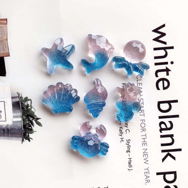 | nameOriginal | Transparent color fine flashing surface starfish shell resin accessories diy jewelry accessories mobile phone case cream glue material |