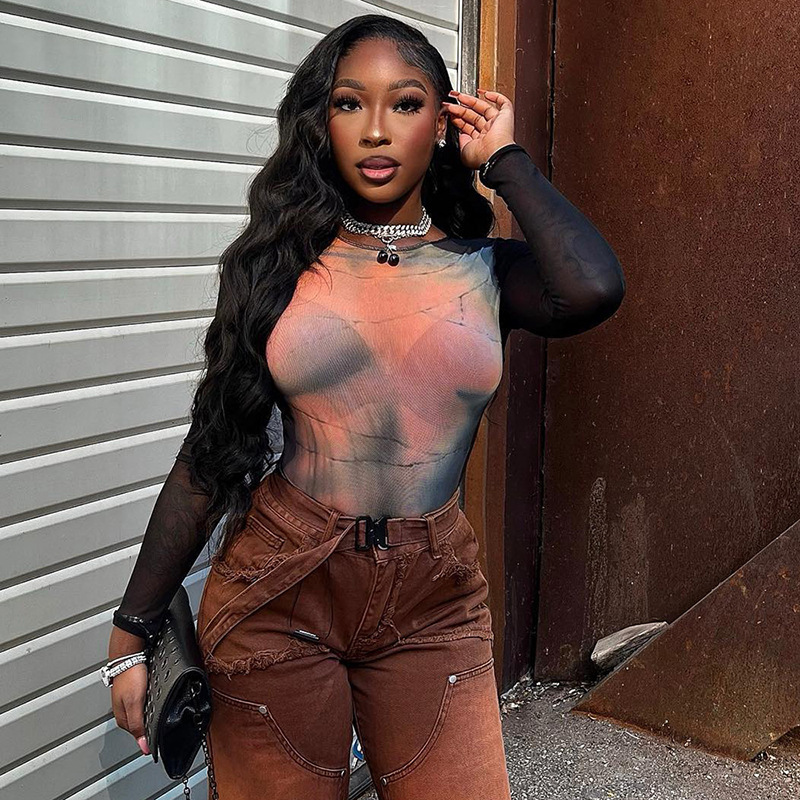 | nameOriginal | Transparent Sexy Mesh European and American Women's Cross-border Autumn New Printed Round Neck Long-sleeved Slim-fit jumpsuit |