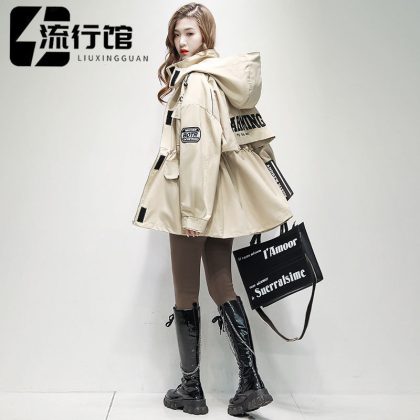 | nameOriginal | Trench coat Women's Mid-length 2023 Spring and Autumn new casual loose embroidered letter jacket hooded jacket fashion |