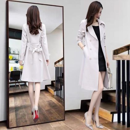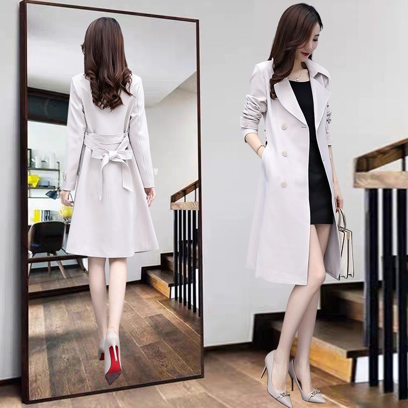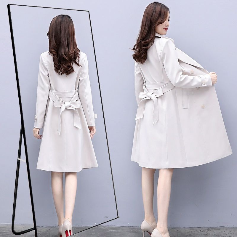 Trench coat Women's Mid-length 2023 spring new Korean style over-the-knee popular small overcoat creamy-white spring and autumn