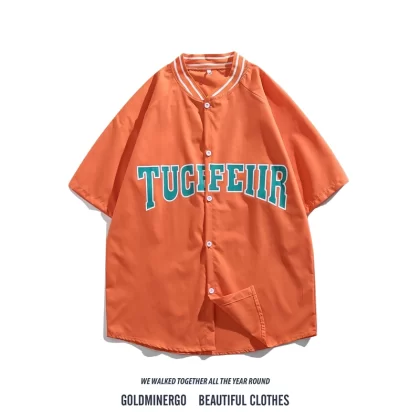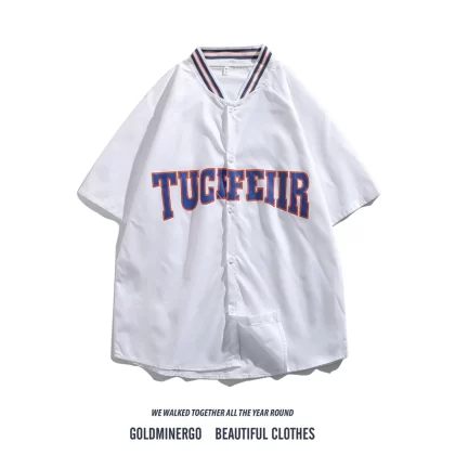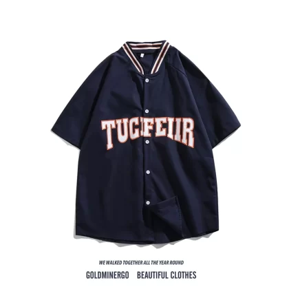 Trendy American hip-hop baseball collar casual short-sleeved shirt