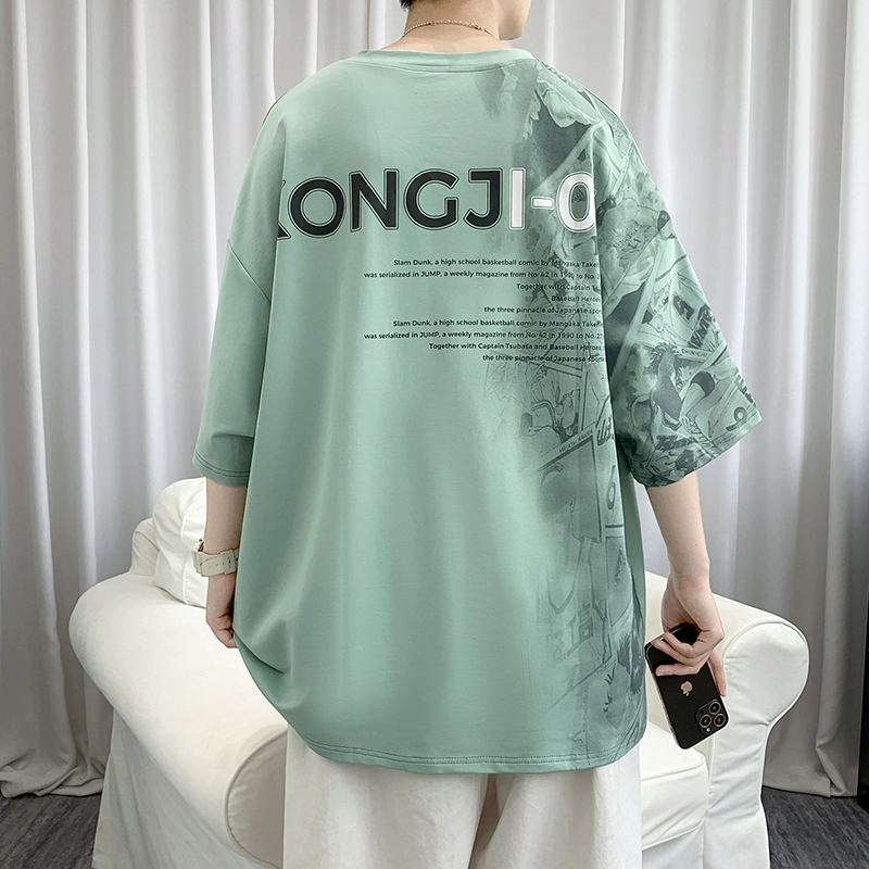 Trendy bean green t-shirt ins Hong Kong style youth short sleeves