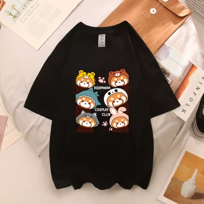 العلامة التجارية العصرية متعة الباندا قصيرة الأكمام كبيرة الحجم ملابس زوجين عادية