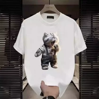 | nameOriginal | Trendy brand ins cat print handsome top short sleeve t-shirt |
