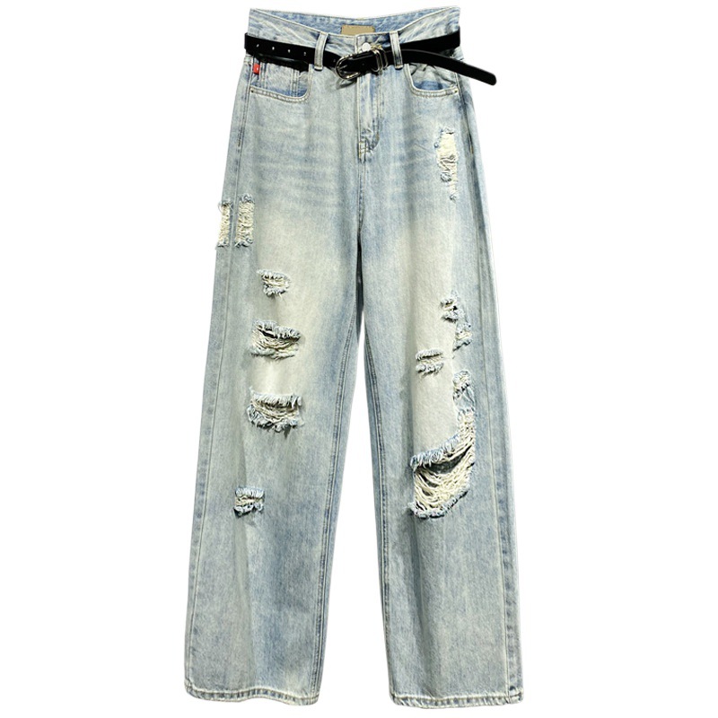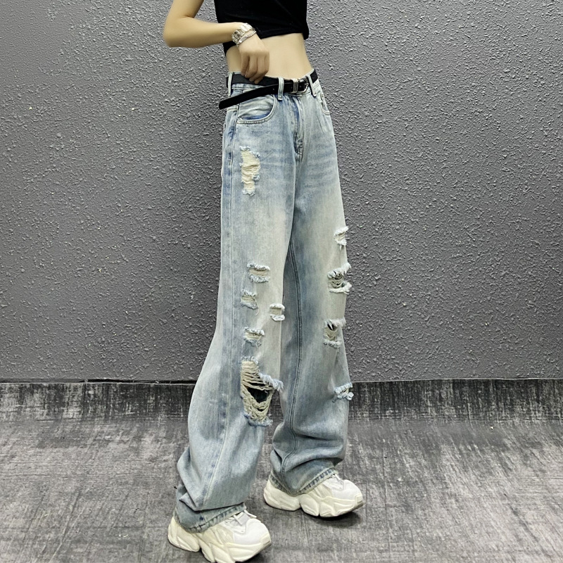 | nameOriginal | Trendy Brand Ripped Design Casual Jeans Women's Summer New High Waist Loose Slimming Straight All-match Wide Leg Trousers |