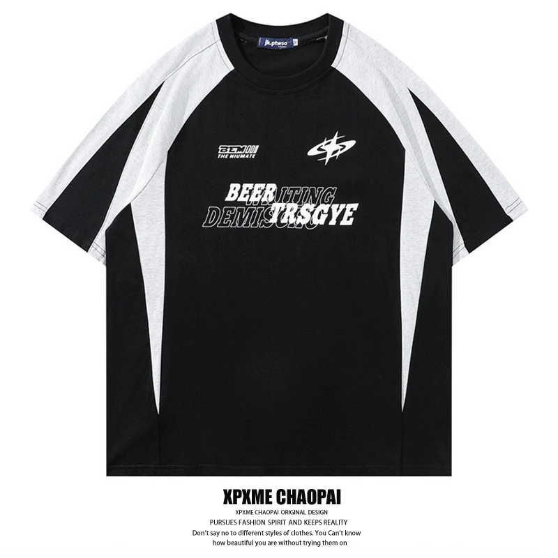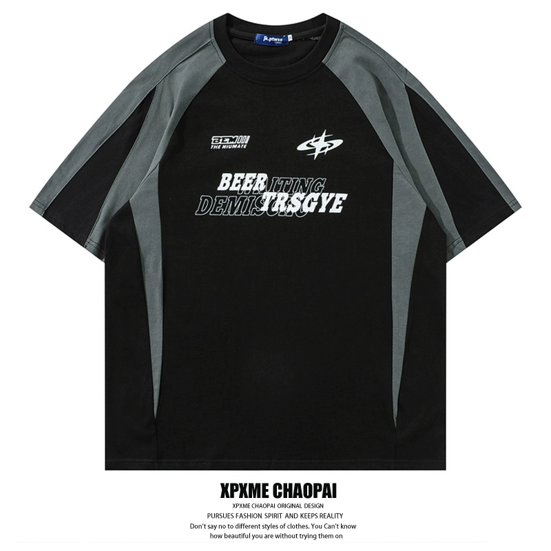 Trendy brand XPXME letter print color block short-sleeved T-shirt