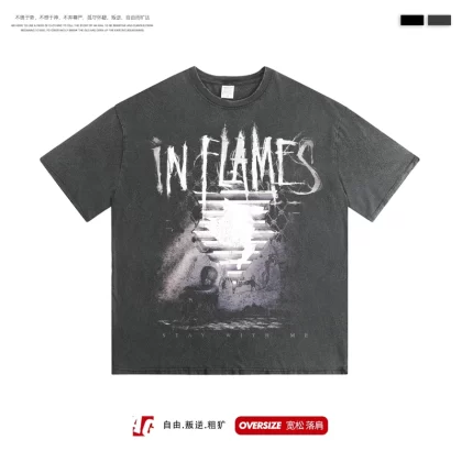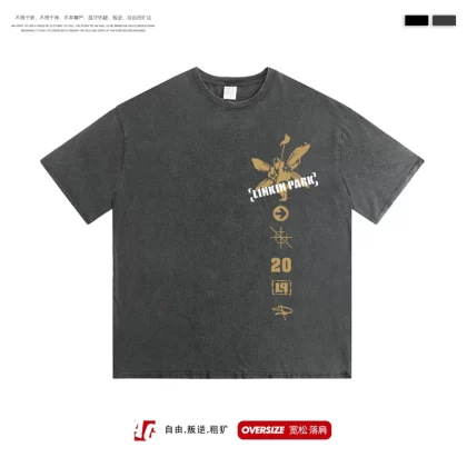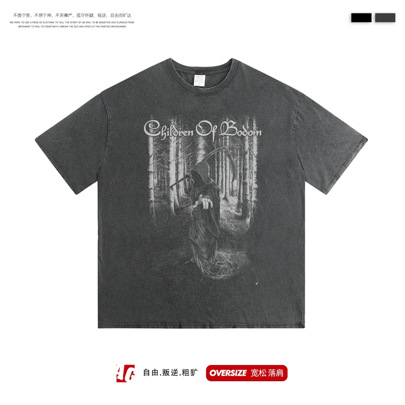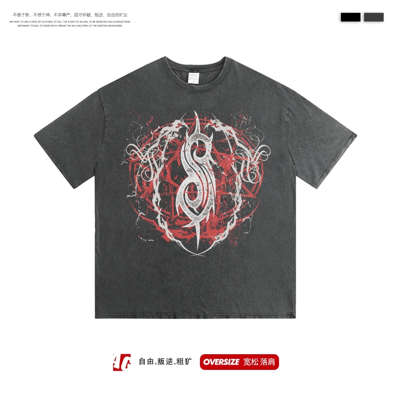 | nameOriginal | Trendy dark gray retro printed pattern short-sleeved T-shirt |