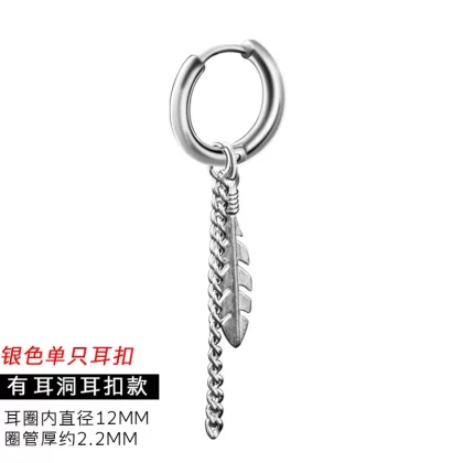 | nameOriginal | Trendy earrings, earrings, men's and women's earrings, titanium steel domineering student single feather ear jewelry, temperament and personality hanging pendant |