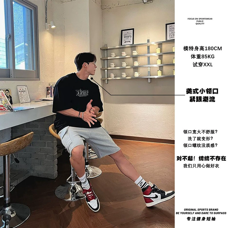 | nameOriginal | Trendy fitness men's loose large size pure cotton short sleeves |