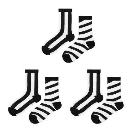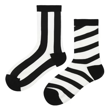 | nameOriginal | Trendy girls AB style horizontal stripe asymmetrical splicing socks |
