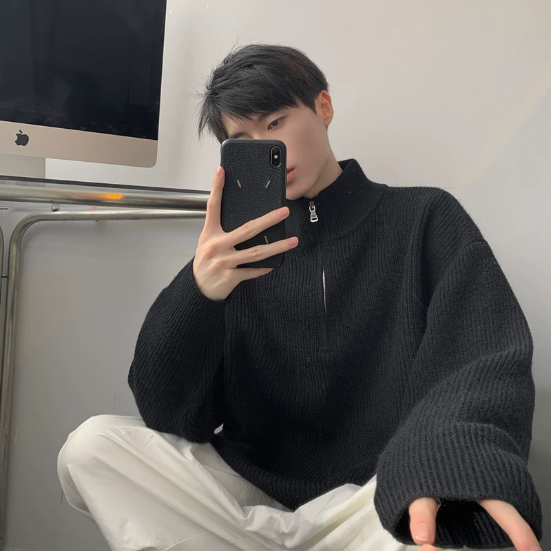 | nameOriginal | Trendy half-zip turtleneck Japanese knitted sweater |